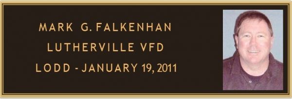 On Wednesday, January 19, 2011, at 18:18 hours, Baltimore County units were alerted for Fire Rescue Box 11-9, 30 Dowling Circle, in Hillendale. Units arrived to a 3 story garden-style apartment building, working fire with multiple rescues ,that would quickly go to 4 alarms, and claim the life of Firefighter Paramedic Mark G. Falkenhan (Co.30 ~ Lutherville). Firefighter Falkenhan was riding the seat on Squad 303 & upon arrival he and a second firefighter from Squad 303 deployed to the upper floors of the apartment building to conduct search and rescue operations. Other fire department units were already involved with both firefighting operations and effecting rescues of trapped civilians. FF Falkenhan and his partner became trapped in a third floor apartment due to rapidly spreading fire and smoke conditions. FF Falkenhan declared a "MAYDAY" and implemented "MAYDAY" procedures. The second firefighter was able to self-egress the building by diving head-first down a ladder on the front of the building. Tragically, FF Falkenhan was unable to escape nor be immediately rescued. When located, he was removed via a balcony on the third floor in the rear of the building. Resuscitative efforts began immediately upon removal from the balcony and he was transported to St. Josephs hospital where resuscitative efforts continued but were unsuccessful and FF Falkenhan was pronounced deceased. In addition to being an active member of the Lutherville VFC, Firefighter/Paramedic Falkenhan was a Past Chief and Life Member of Middle River Volunteer Fire & Rescue and had been a BCoFD career Firefighter/Paramedic for 16 years before leaving for a position with the U.S. Secret Service. Firefighter/Paramedic Mark Gray Falkenhan was 43 years old and had served 24 years.
