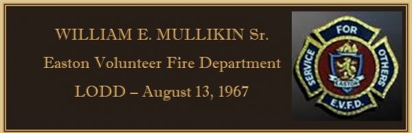 August 13, 1967 Engineer William E. Mullikin, Sr was by himself driving Engine 69 to the fire company's annual picnic where he was to be on stand-by duty with other fire company members in attendance. Engineer Mullikin was headed towards Bruff's Island in ...